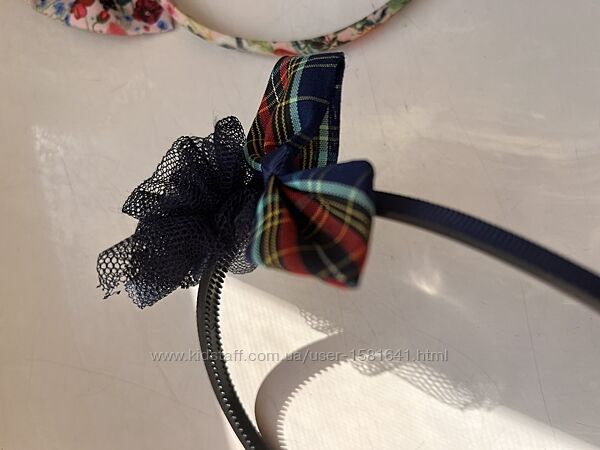 Обруч для волос волосся синий клетка цветы цветвстый разноцветный бант
