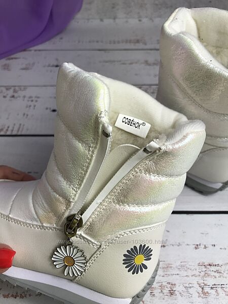 Подробное описание: Чобітки дутики дитячі на дівчинку Совенок Білий 742