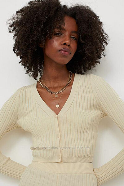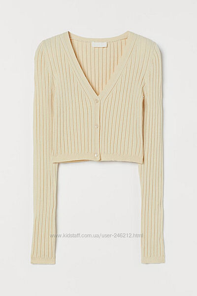 Укорочений кардиган кофта H&M ,можна носити як реглан.Короткий кардиган на ґудзиках із трикотажу в рубчик із довгими облягаючими рукавами та V вирізом.