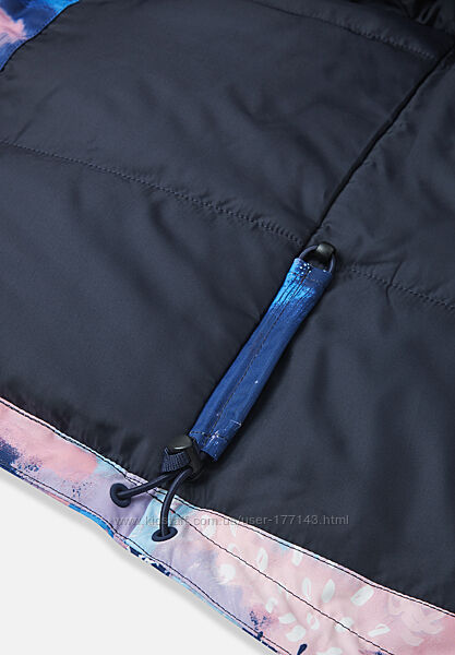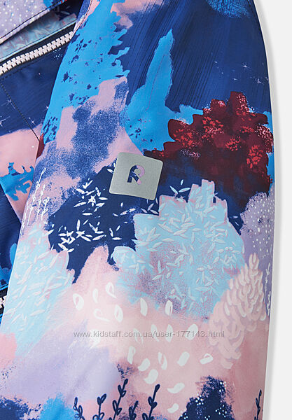 Все швы водонепроницаемы, а материал покрыт водо- и грязеотталкивающей пропиткой без содержания фторуглерода BIONIC-FINISH®ECO, чтобы влажная погода не помешала играм на улице. Утеплитель Fellex® изготовлен из 100% переработанных волокон. Основной материал, гладкая подкладка и утеплитель одобрены bluesign®. Модель имеет безопасный съемный капюшон, эластичные манжеты, два кармана на молнии, регулируемый полод и детали, отражающие свет. Принт нанесен на ткань по технологии цифровой печати, что позволяет экономить энергию, воду и красители.