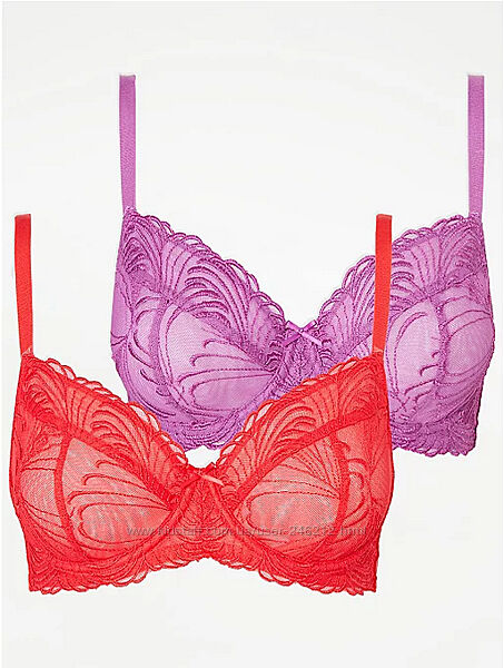 Ажурний комплект George З нової колекції!Складається з 2 бюстгалтерів червоний та фіолетовий