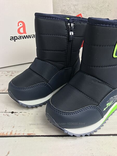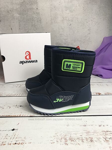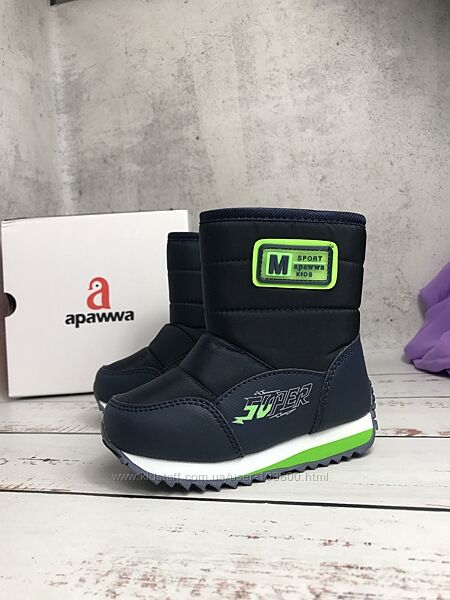 🎉 Чудова новинка в нашому асортименті стильні, комфортні та теплі зимові дутики для хлопчиків ApawwaДля виготовлення такого виду взуття використовується спеціальна водонепроникна тканина по типу плащівки, яка відмінно тримає тепло, має невелику вагу та не дозволить ніжкам намокнути в дощову і снігову погоду