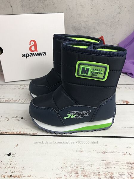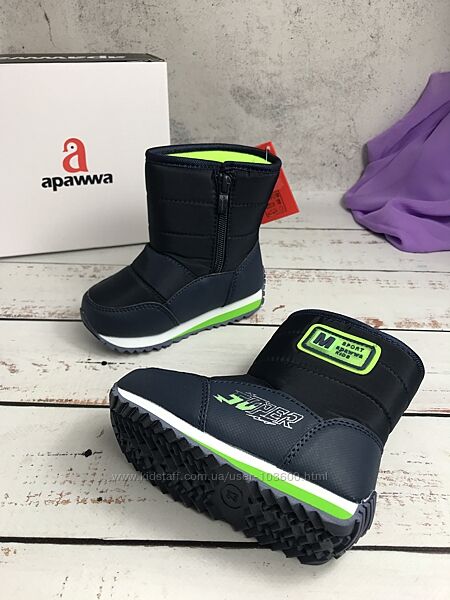 Подробное описание: Чоботи дутики зимові дитячі на хлопчика Apawwa Темно-синій 225