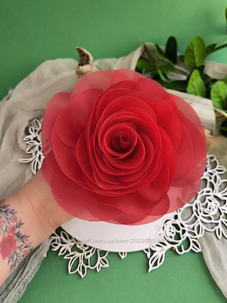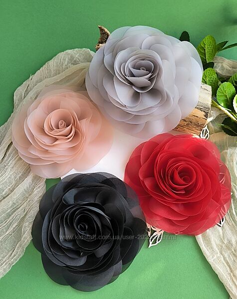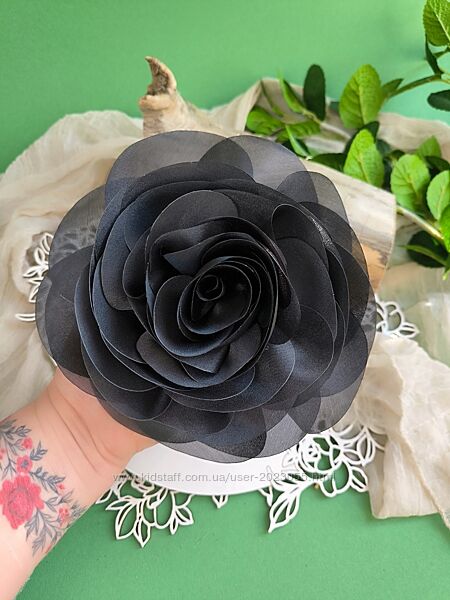В наявності! Пудра та чорна троянда!Брошка- троянда 18-17см.