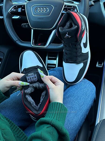 Подробное описание: Зимові кросівки Nike Air Jordan 1 Retro Black white red з хутром 36-41