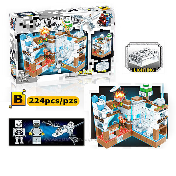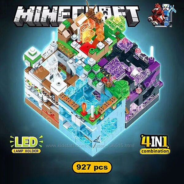 Подробное описание: Конструктор Майнкрафт 4 Крепости, 927 деталей, свет. блоки. Minecraft.