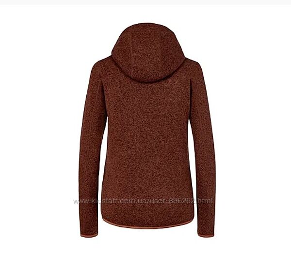 Кофта флісова. Оптимальна теплоізоляція завдяки м’якій внутрішній частині. Капюшон, який регулюється по ширині, обшитий м´яким плюшем. 2 прорізні кишені з клапаном. Двостороння передня блискавка з захистом підборіддя.