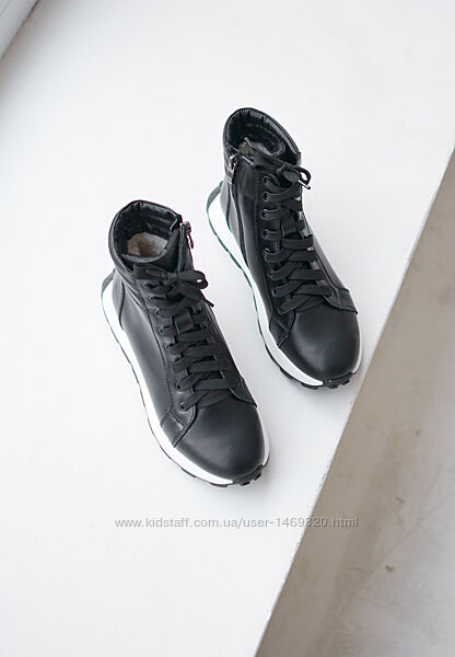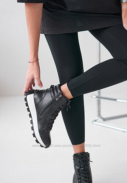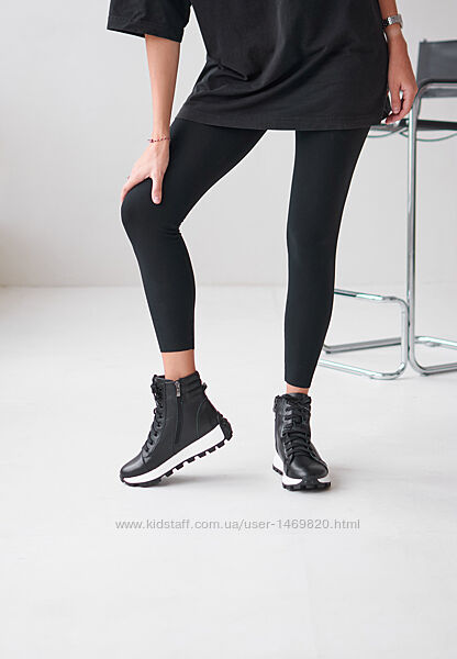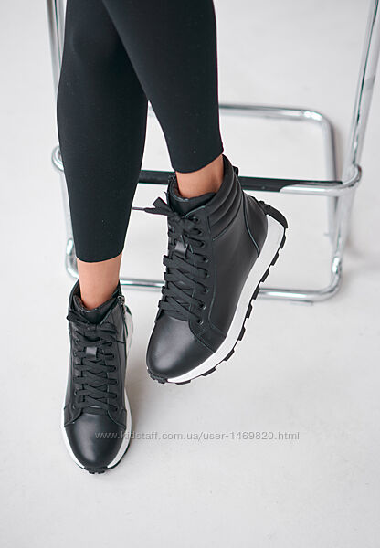Подробное описание: Зимові жіночі високі шкіряні кросівки чорні