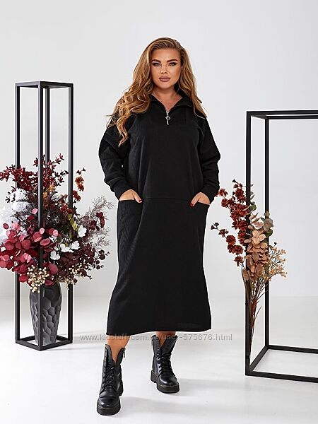 Зручна комфортна тепла сукня приємна до тіла, горловина на змійці, кишені надають стиль сукні з боків, є розрізи для більшого комфорту при ходьбі.