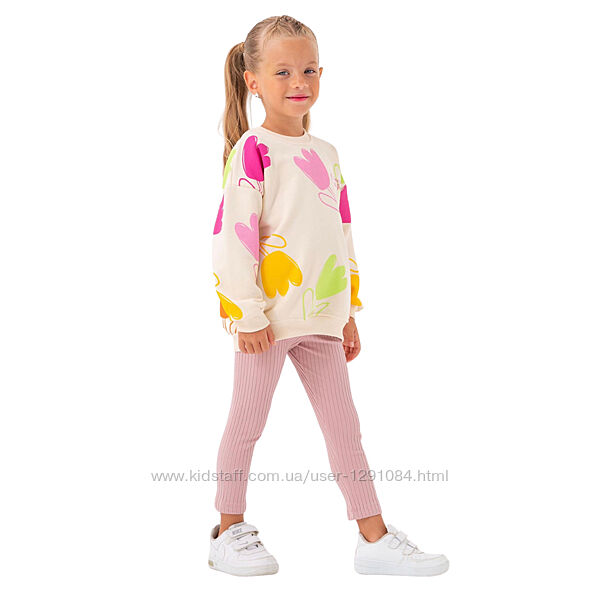 1. Детский костюм (молочный свитшот и розовые лосины) для девочек