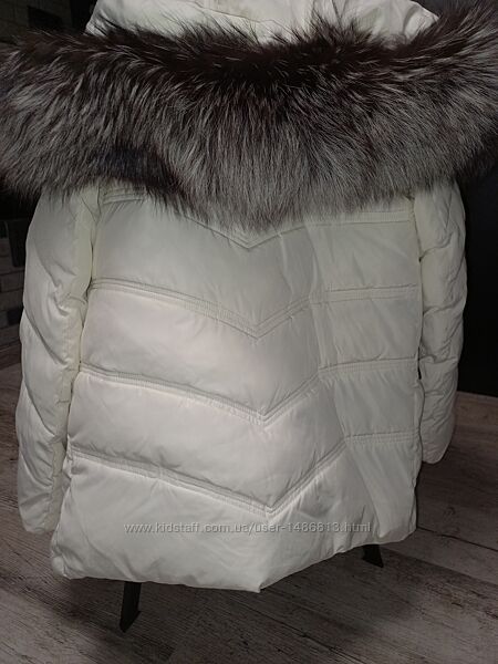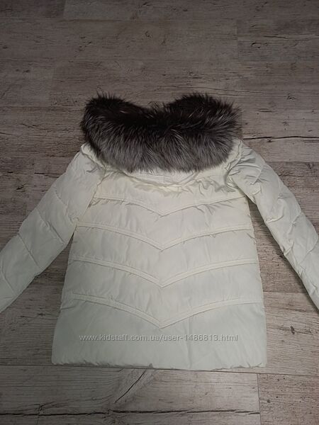 пуховик(біопух),опушка чорнобуркав гарному стані, колір "перлинний", білий трохи з молокомє незначні нюанси,на фото показала,наповнювача не збитий