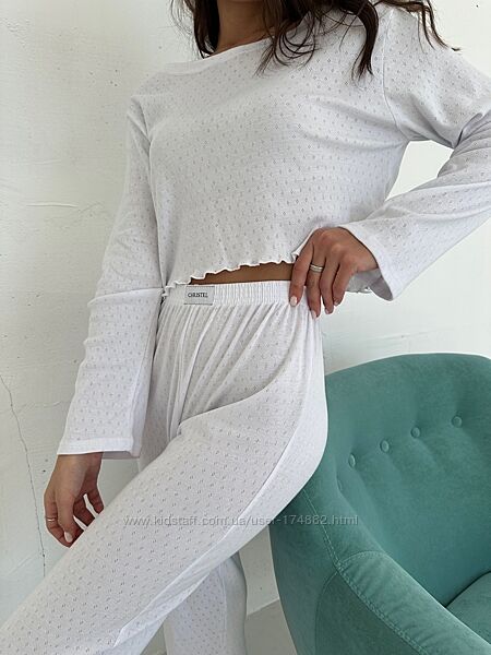 Christel 152 домашній комплект костюм піжама кофта коротка і штани бавовна