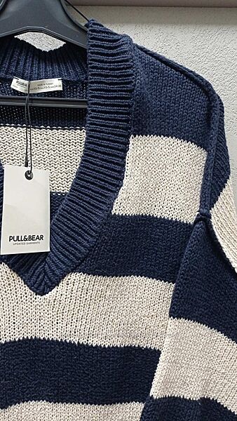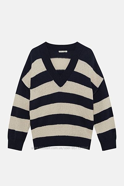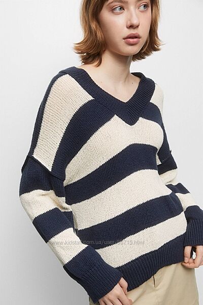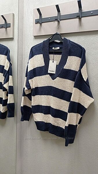 Подробное описание: Полосатый свитер оверсайз с V-образным вырезом Pull&Bear - XS-S, M-L