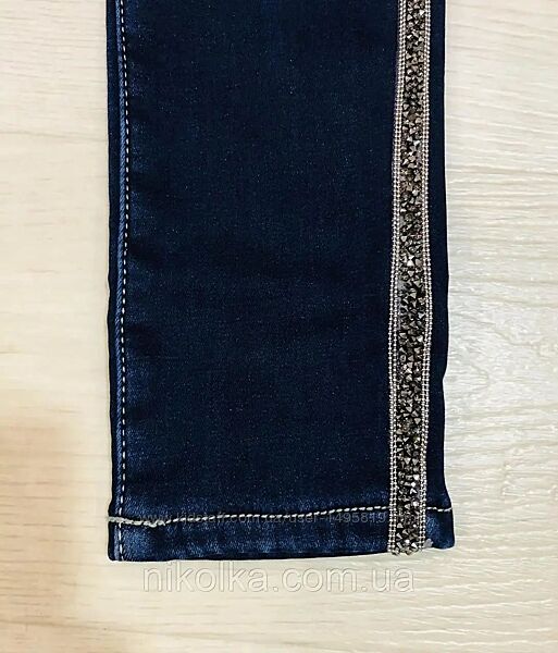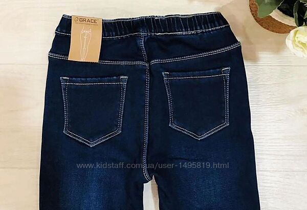 Джинси джеггінси для дівчат від угорської фирмы Grace. Модель стильна, дуже гарної якості, комфортна, практична, висока посадка. Утеплені флісом (напилення, не окрема підклада). Верх резинка, завужені по ніжці, декор стразами на лампасах. Модель добре тягнеться.Розміри: 116-122-128-134-140-146.
