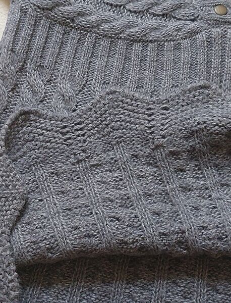 Продам женский вязаный свитер/жилетку марки H&B Balu в хорошем состоянии. После деликатной стирки. Размер - XS-S. Цвет - серый. Вязка - машинная, но смотрится как ручная. V-образный вырез, можно застегивать на кнопки. Модель - свитер/жилетка, приталенная, от груди свободная. Модель рукава - сплошной, без швов, спущенный, укороченный. Мягенький, теплый и приятный к телу. Можно носить с гольфом. Смотрится очень стильно!Есть маленькое пятно (см.фото), но его практически не видно. Можно сдать в химчистку.