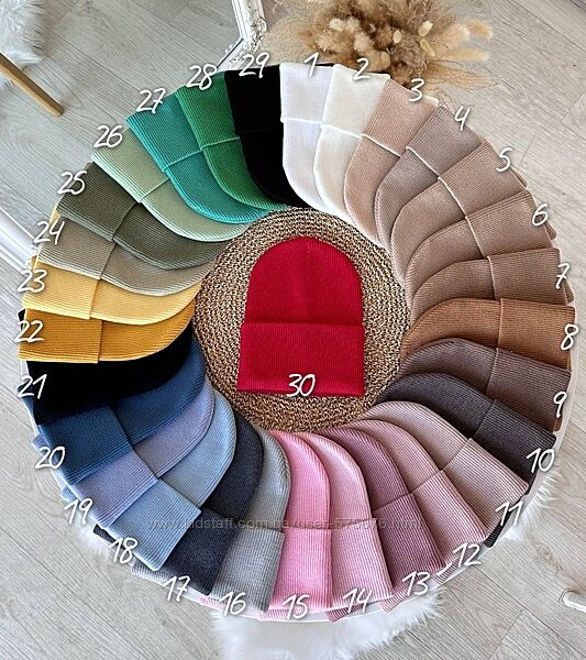 Подробное описание: 55-59 30 кольорів Шапка демісезонна подвійна з відворотом