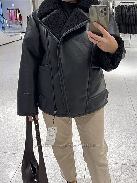 Стильная дубленка косуха свободного кроя из искусственной кожи бренда Zara.Размер L, можно и на М.