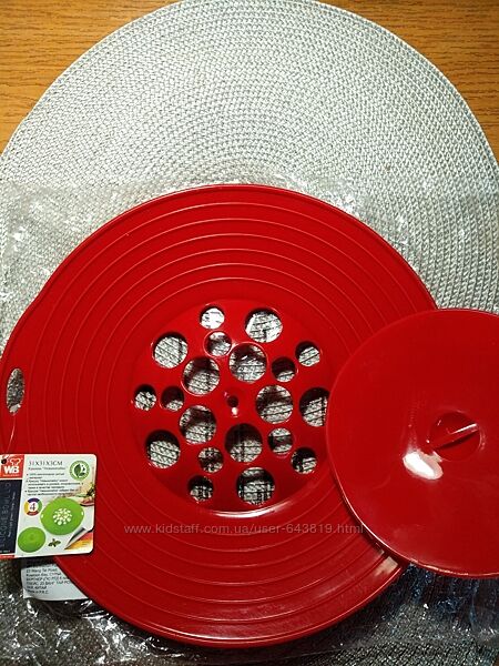 Крышка силиконовая универсальная, 3 функции в 1, можно использовать, как крышка - невыкипайка, как пароварка и как крышка для микроволновки.Производитель : Wellberg.