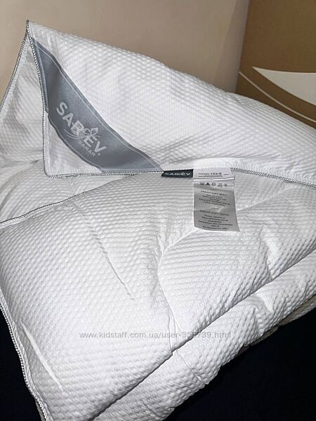 В отличие от бюджетных наполнителей, микрогелевое волокно фирмы Sarev не сбивается, равномерно распределено по всему одеялу, имеет самую мягкую структуру, достаточно теплое, но при этом не парит.