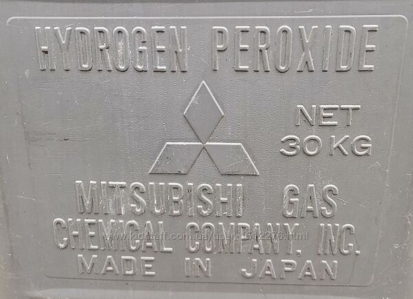 Каністра пластикова з-під перикису водню. Виробництва Mitsubishi Gas chemical company inc. Made in Japan. Дата виготовлення (згідно маркування на каністрі) - грудень 1989 року.Об´єм - 30 літрів. Розміри, см: 43 х 31 х 24.