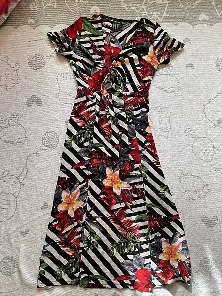 Літня сукня від бренду Boohoo. Розмір S. Зав´язується спереду на грудях. Збоку має замочок. Внизу два розрізи.Стан ідеальний.