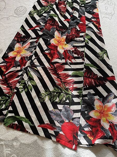 Довжина 128 см, талія 34 см, бедра 52 см, по грудях зав´язується, регулюється під свій об´єм.