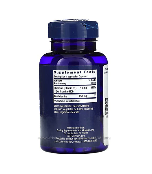 # Life Extension, Мега-бенфотіамін, 250 мг, 120 вегетаріанських капсулОПИС: