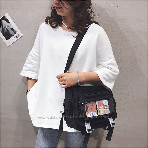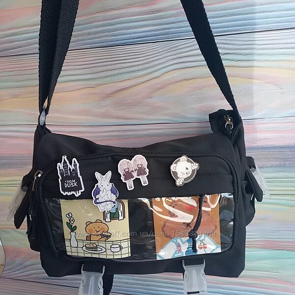 Подробное описание: Сумка с прозорим відділом через плечо для значков и карточек, чорна