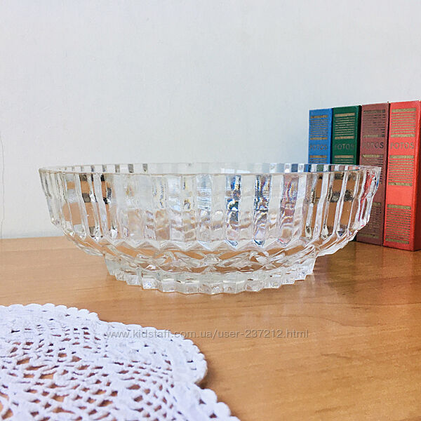 Подробное описание: Рифленое стеклянное блюдо ссср, салатница стекло, ваза для фруктов
