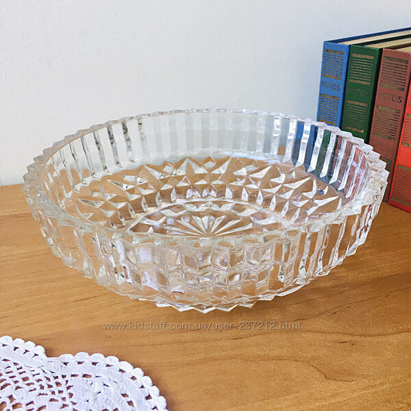 Большое стеклянное блюдо из семейной коллекции. В использовании не было.Можно использовать как салатник, конфетницу, блюдо для фруктов или просто для декора в стиле ретро.
