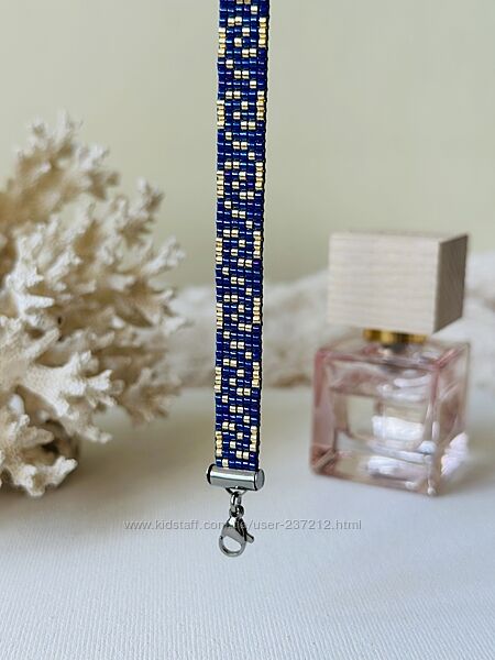 Подробное описание: Синий бисерный браслет с золотым узором, браслет из бисера