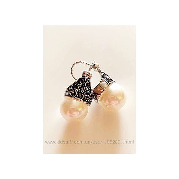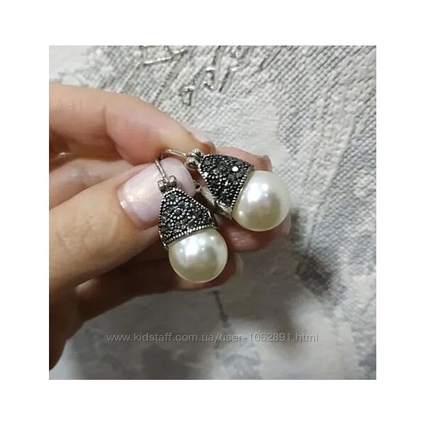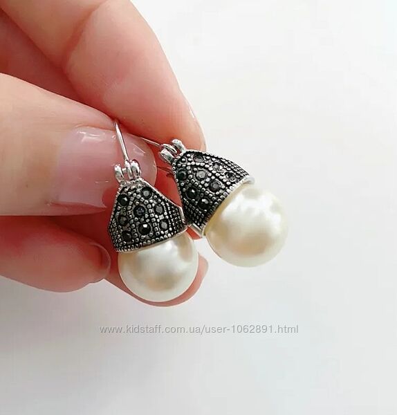 Шикарні сережки зі штучними перлами, якісна біжутерія.Виконані ідеально: метал під старовинне срібло (не викликає роздратування і алергії), оригінальна міцна застібка, якісна імітація перлин.