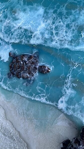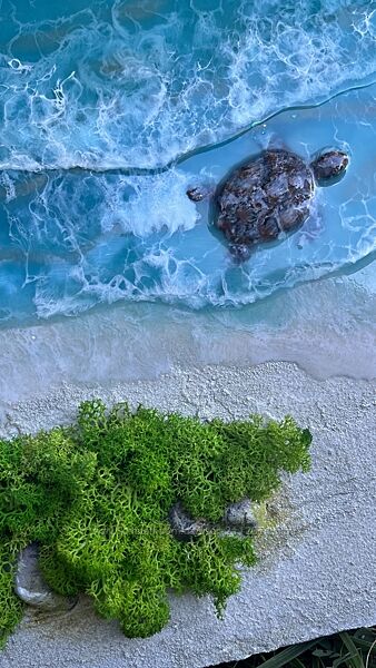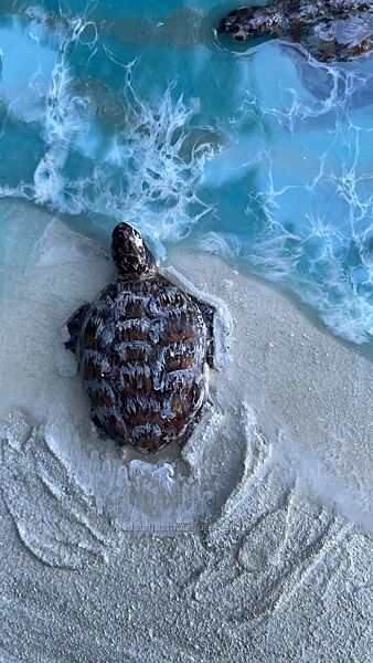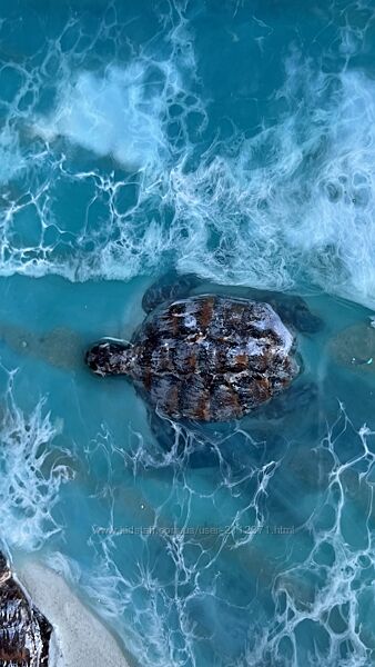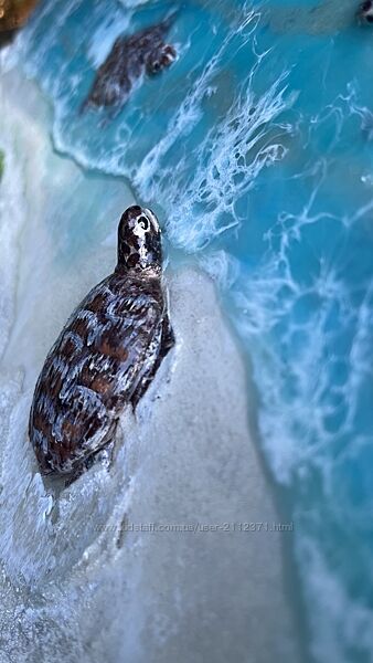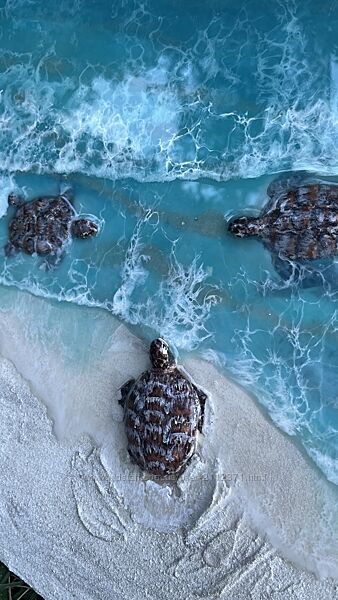 Картина эпоксидной смолой 3D Черепаший пляж 50х40см.