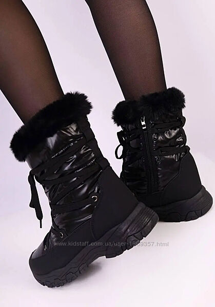 Подробное описание: Чоботи дутики жіночі зимові чорні С341