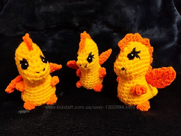 Веселі дракончики дуже чекають на свого нового друга, адже до нас прямує рік Дракона і він обов’язково має бути у вашій родині)Іграшки в´язані гачком, очі на безпечному кріпленні, гіпоалергенна пряжа (YarnArt «Baby», акрил 100%, одна із самих універсальних ниток турецького виробництва).