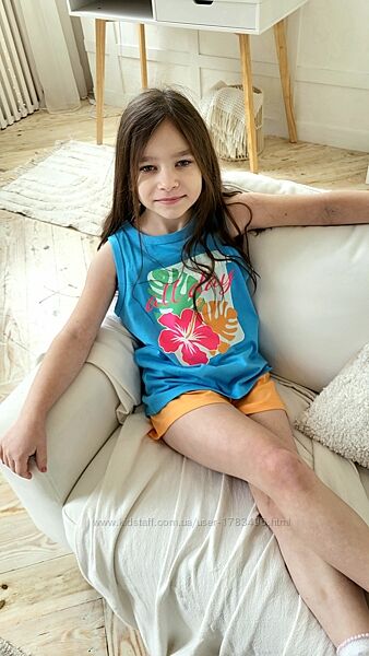 Подробное описание: Дитяча піжама майка з шортами натуральна яскрава для дівчинки Primark