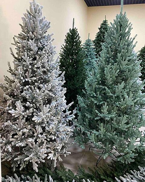 Всі ялинки починаючи від 1.5м до 3.5м є розбірними, які розкладаються на 1.5м і решту довжини. До ялинки завжди є підставка, ялинки з ПВХ йдуть з пластмасовою ніжкою, литі ялинки мають залізну ніжку.