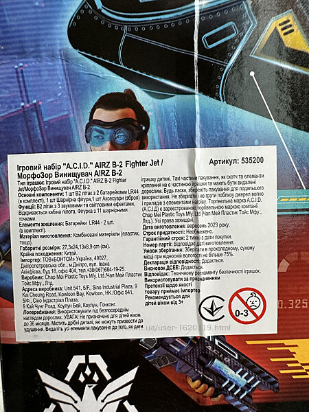 Функції: Винищувач AIRZ B-2 з звуковими та світловими ефектами. Відкривається кабіна пілота. Фігурка з 11 шарнірними точками.