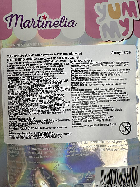 Увлажняющая маска для лица Martinelia Yummy — настоящая магия для вашей кожи. Обогащенная уникальными ингредиентами, она призвана превратить заботу о вашей коже в настоящее чудо и подарить вам ощущение нежности и свежести. Этот источник влаги и питания для вашей кожи. Она специально разработана для того, чтобы насытить кожу влажной. Насыщенный аромат и нежная текстура создадут атмосферу настоящей спа-процедуры, где вы можете насладиться моментом ухода за собой. Каждое применение — это ваше маленькое путешествие в мир ярких эмоций и сказочной ухоженности.