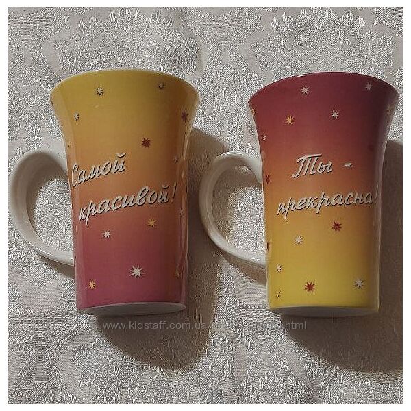 Продам чашки с надписями "Самой красивой!" и "Ты - прекрасна!" и фентезийными рисунками. Б/у, но состояние хорошее, в употреблении были мало. Подойдут и на подарок. Объем 350 мл. Буду продавать еще много разной посуды, смотрите другие мои объявления, пожалуйста.