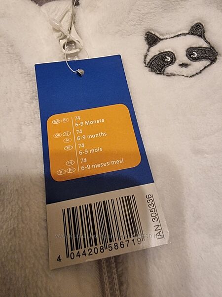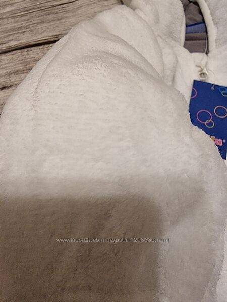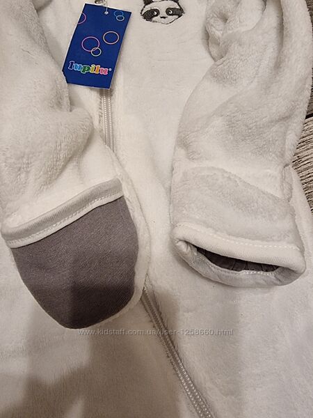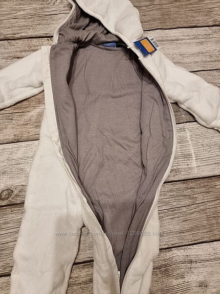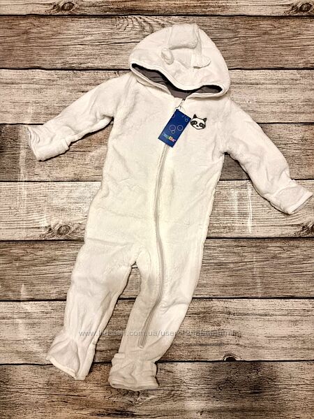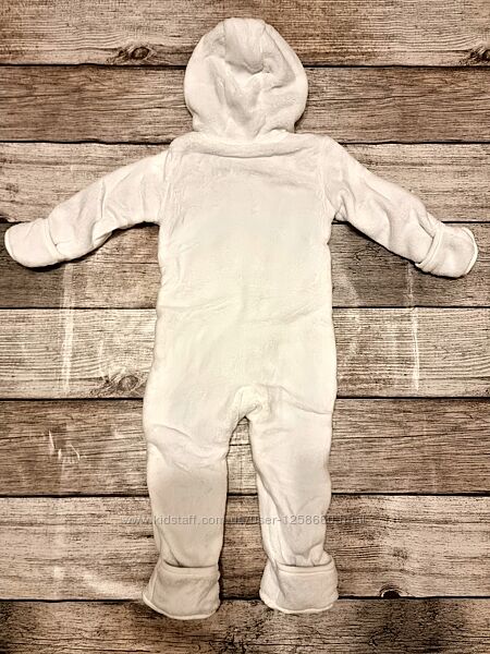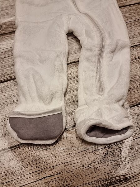 Теплий комбінезон- зовні плюш, м´яка тканина (100% полієстр), всередині м´яка підкладка (100% бавовна). Ручки і ніжки закриваються. Тканина трохи тягнеться. В наявності на зріст 74см 6-9 місяців.Виміри: плечі 24см, довжина рукава 29см, пів-обхват грудей 27.5см, довжина повністю 68см, довжина змійки 56.5см.