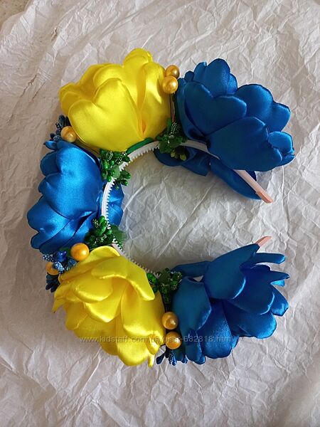Віночок в українських кольорах ручної роботи. Можливе виконання в інших кольорах, або повтор з урахуванням Ваших побажань.#вінокукраїнський #обручіручноїроботи