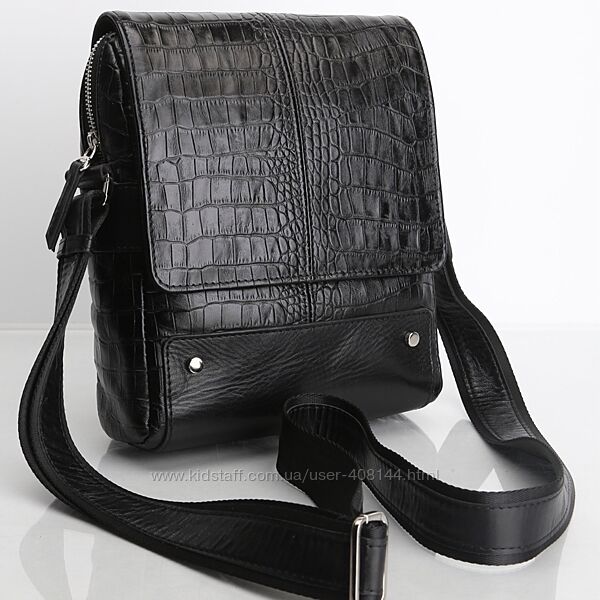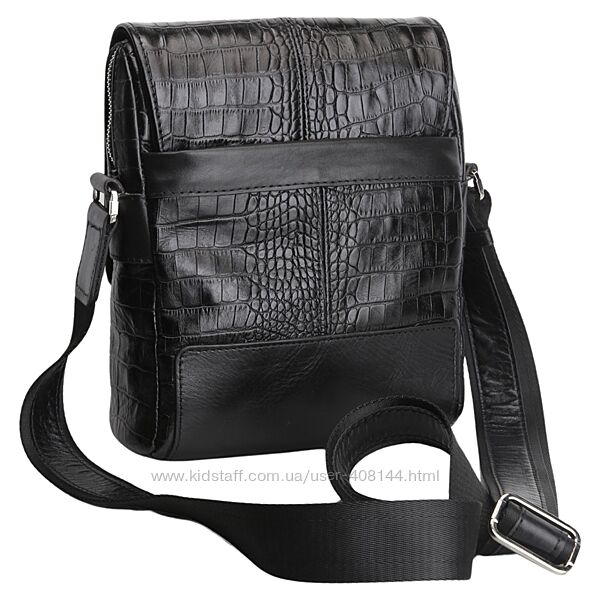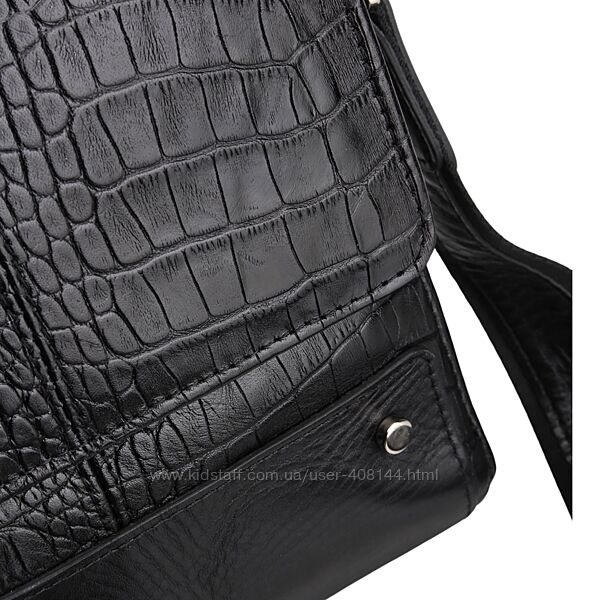 Сумка чоловіча через плече шкіряна Bond Non 1088-356 чорна✔️ Матеріал: натуральна шкіра теляча - структура під крокодила. Всередині щільна тканинна підкладка.