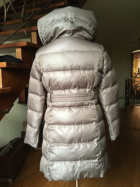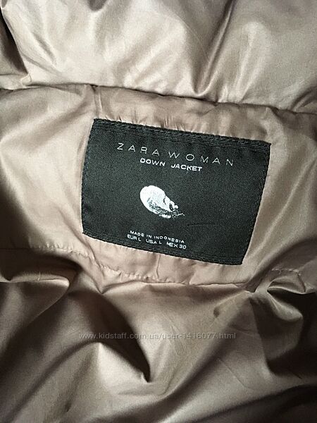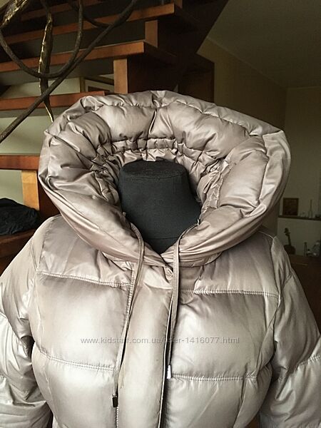 Фирменный пуховое пальто бренда Zara. Размер 34 . Без капюшона , но объемный, высокий воротник. Тёплый и мягкий .