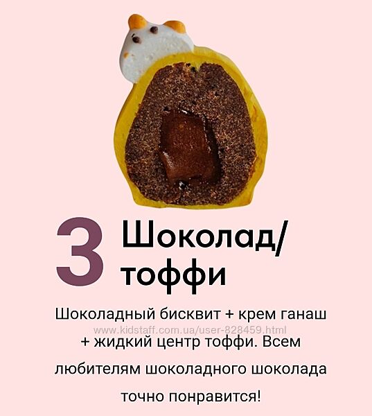 Шоколад-Тоффи (шоколадный бисквит, крем-ганаш, жидкий центр «Тоффи»).