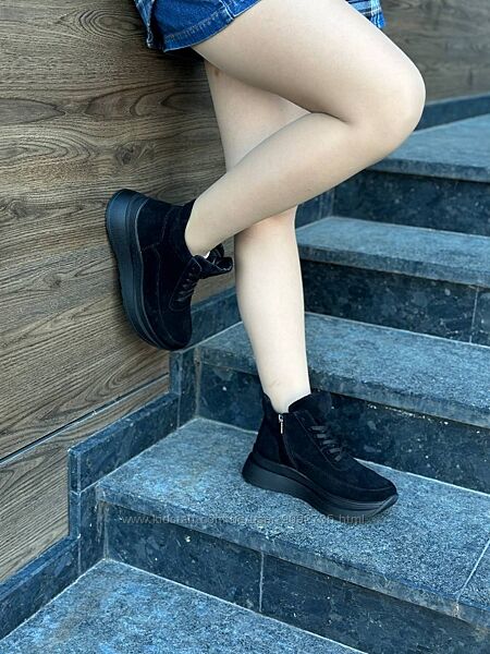 Подробное описание: Кросівки жіночі замшеві зимові чорні та бежеві Артикул 9409 розпродаж