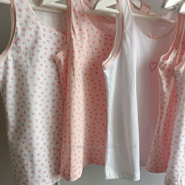 4-5л,5-6л,6-7л,9-10л. Майки Сердечки George в наборе 5 шт.