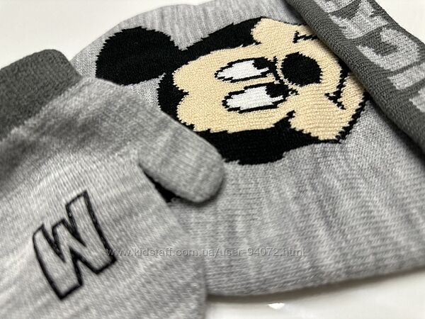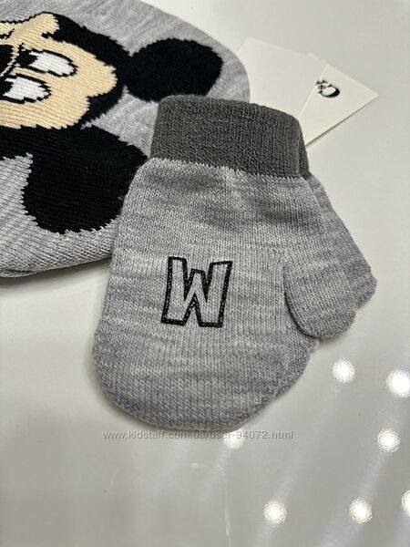 Комплект з шапочки та рукавичок. Мʼяка тонка вʼязка в два слої. Трохи еластичний трикотажний комплект. Двошарова дитяча шапочка з 3D-аплікаціями та підгорнутим подолом. Дитячі рукавиці прикрашені прогумованим принтом.
