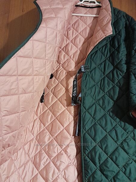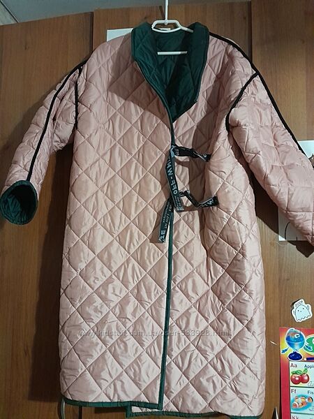 Матеріал: стьобана з двох сторін плащова тканина на синтепоні (150), довжина 110см, довжина по плечу 25см + рукав 48см, рукав от подмышки 50 см.