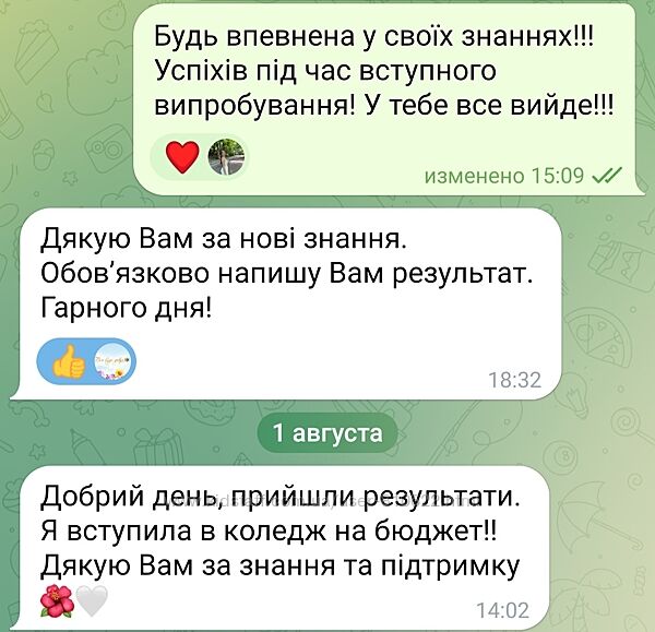 Позитивна, доброзичлива, відповідальна. Не відбираю учнів за рівнем знань, а працюю з кожним, хто бажає покращити свій результат.